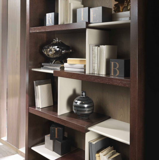 LIBRERIA SEGRETI - IN ROVERE CON RIPIANI LACCATI