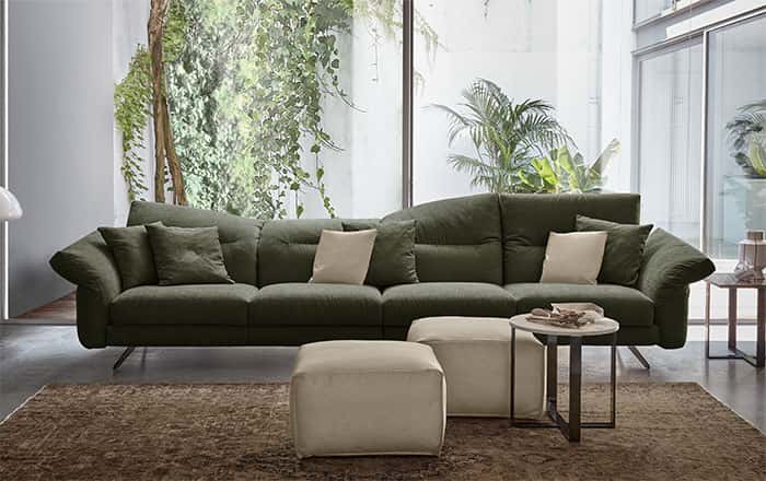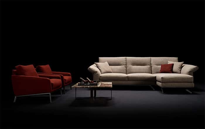 Un innovativo sistema di imbottiture rende Chelsea un modello estremamente versatile: meccanismi interni consentono la mobilità di spalliere e braccioli e la massima estensione degli spazi, regalando un comfort avvolgente.