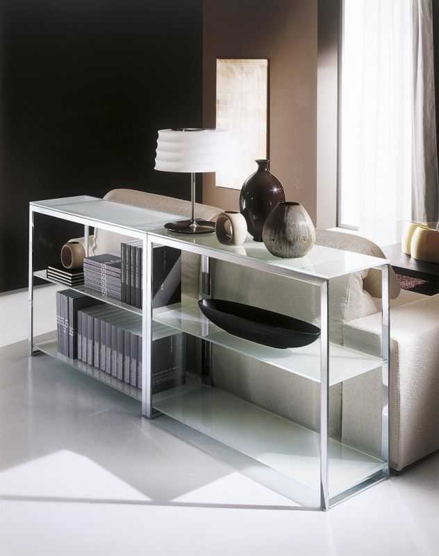Madia Hip Hop con struttura in acciaio laccato in diversi colori e ripiani in cristallo temperato lucido oppure opaco antigraffio.