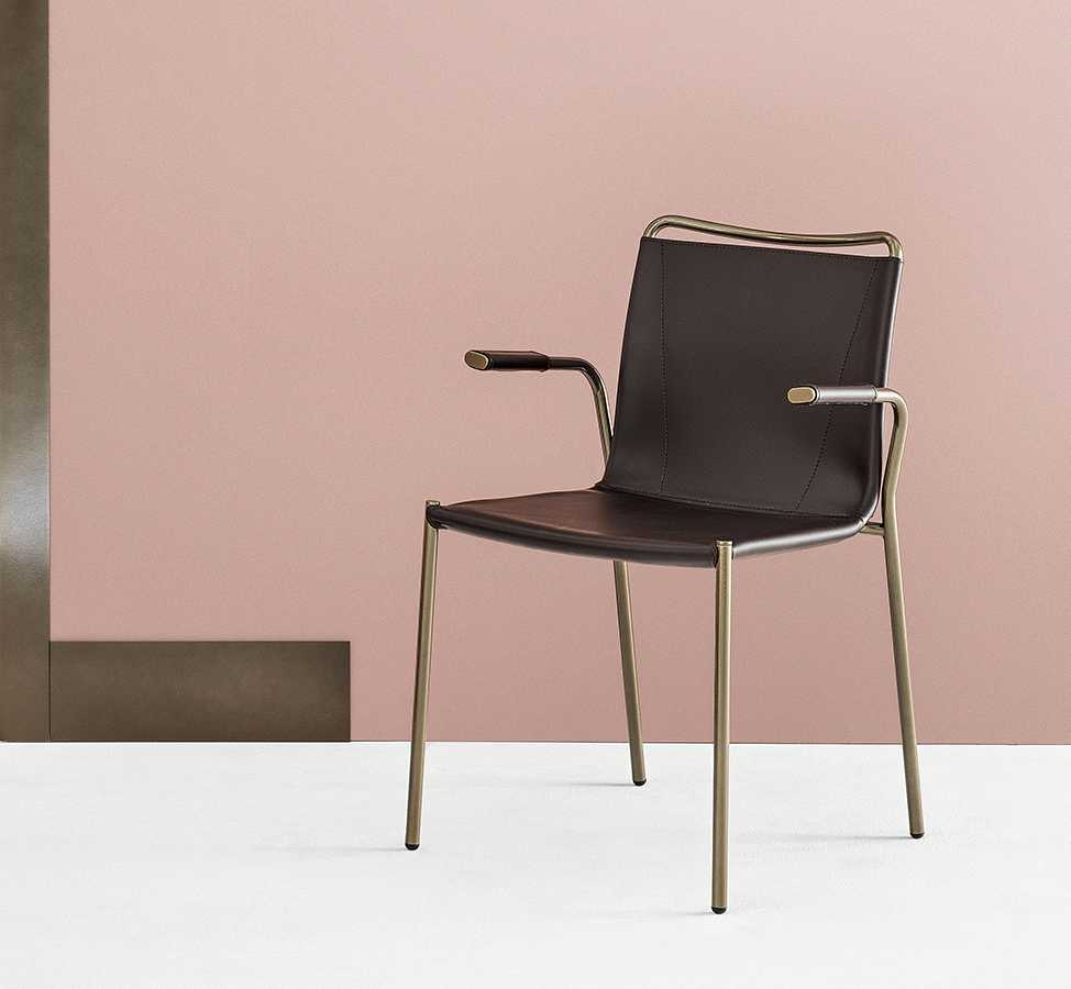 Con la sedia Shape Braccioli, Bontempi Casa ripropone un classico intramontabile: la sedia in cuoio dall'aspetto arioso ma di gran carattere, in grado di vestire qualsiasi ambiente interno, dalla casa alla zona ufficio.
