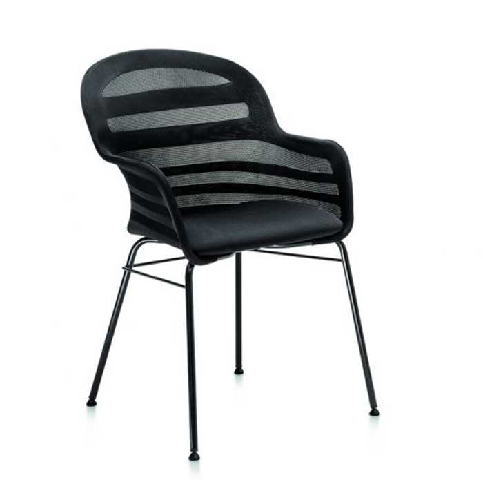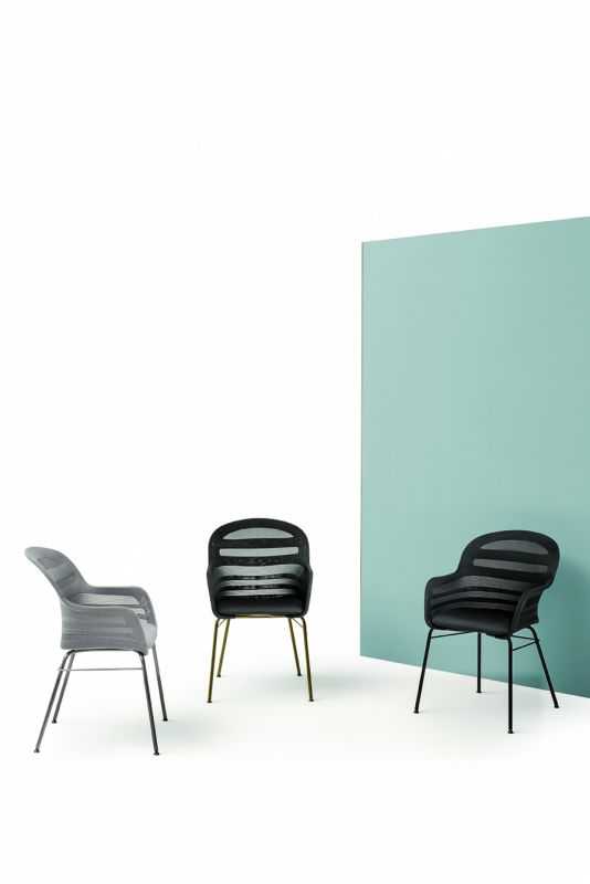La sedia Suri con braccioli è realizzata con struttura in acciaio.