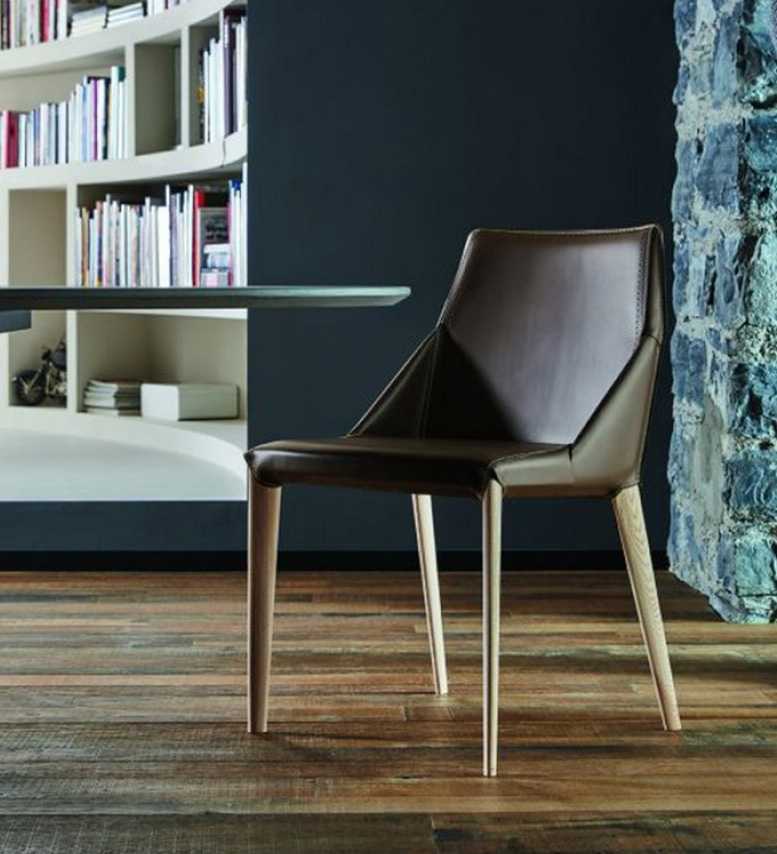 Sally è una sedia elegante e raffinata, rivestita in cuoio con particolari e finiture di pregio.