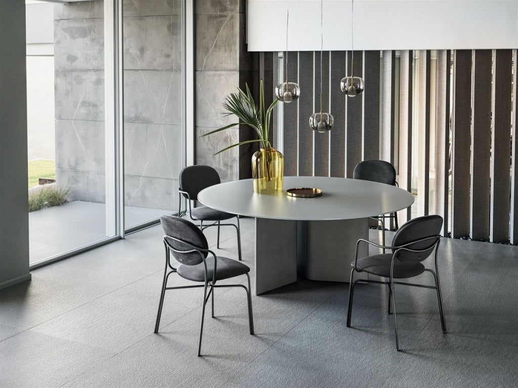 Disponibile anche nella versione con braccioli, la sedia Dada si presta ad essere indossata in un'ampia varietà di finiture che la rendono un oggetto di massima espressione.