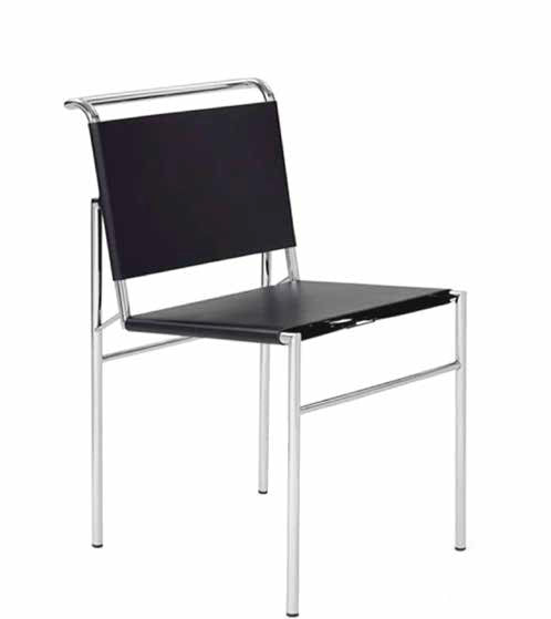 Struttura in tubo d’acciaio cromato verniciato, rivestimento in cuoio o cavallino.