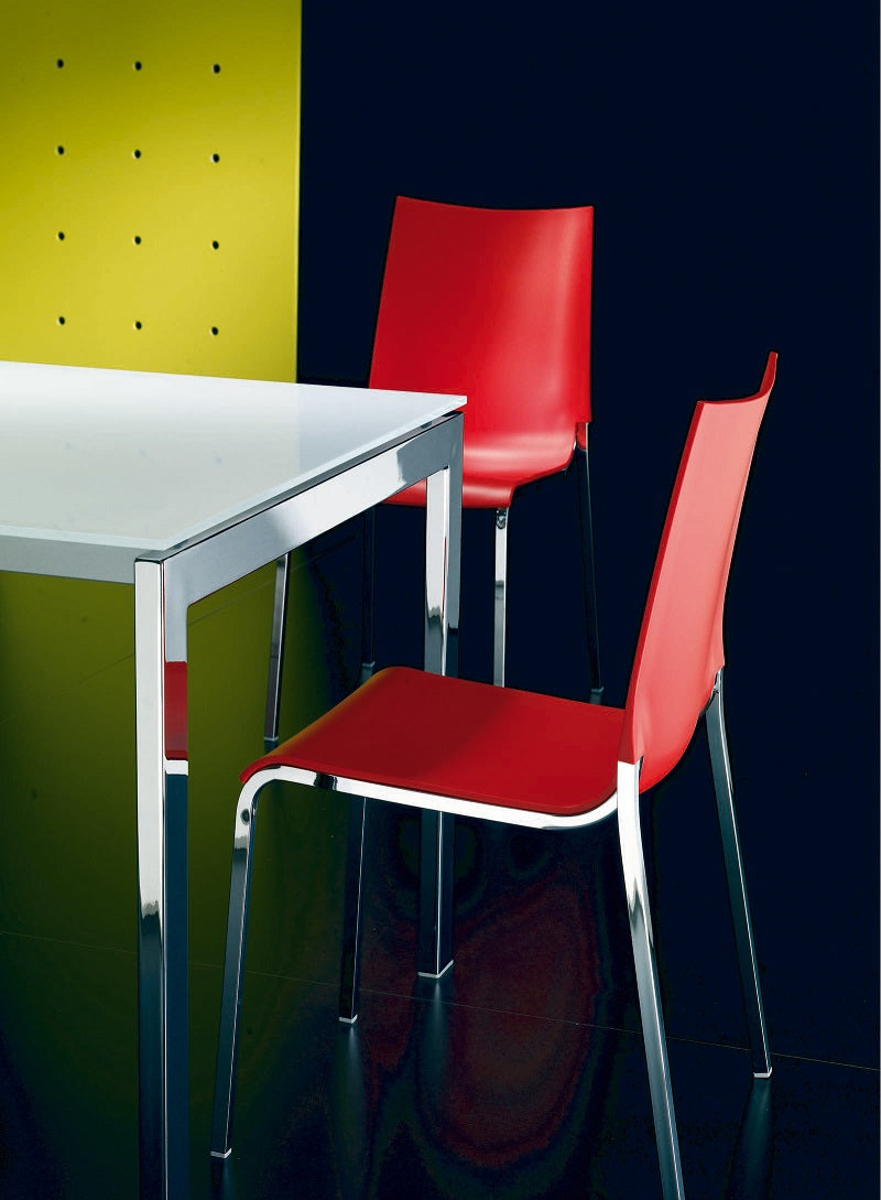Telaio e gambe in finitura cromato lucido o verniciato.