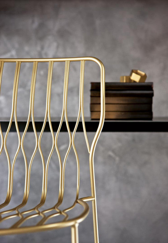 Questo elemento richiama linee classiche attraverso la sua struttura ricca di particolari, il disegno che descrive la sua seduta sembra ispirato dalle decorazioni dell'architettura dorica. Sedia dall'elevato comfort, renderà i vostri ambienti una perla di buon gusto ed eleganza. Freak la scelta giusta e di personalità.