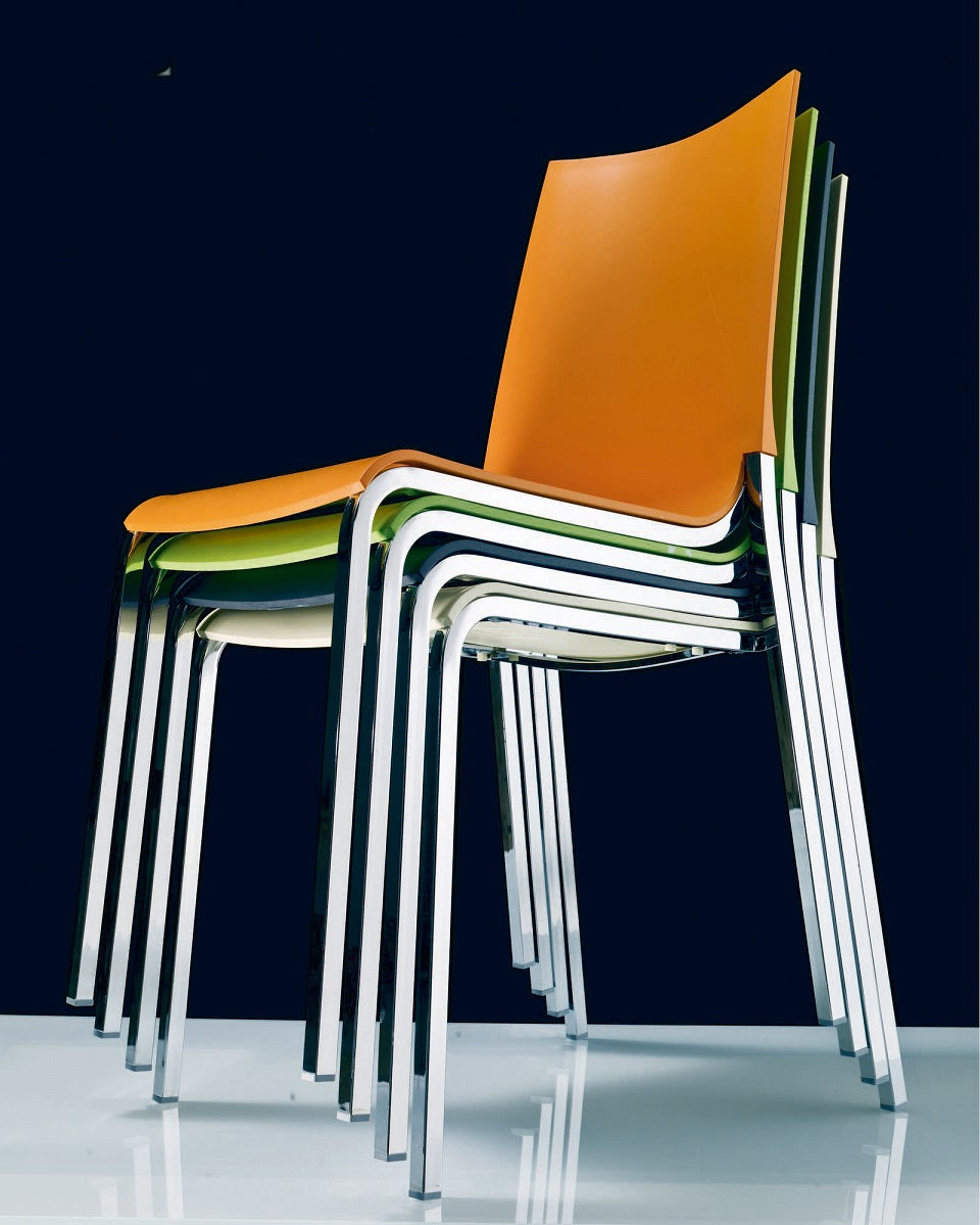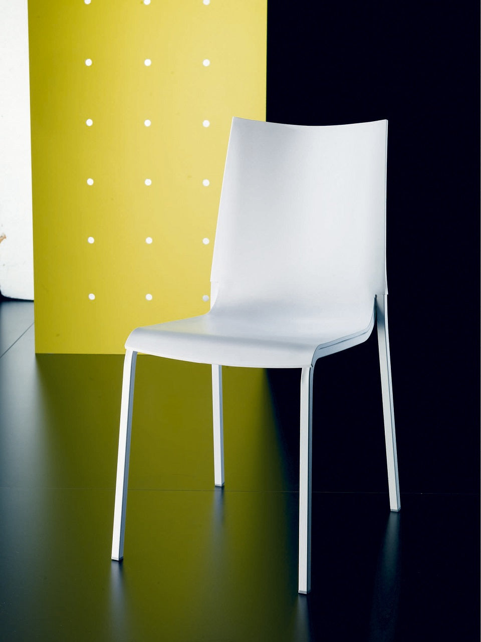 Seduta in polipropilene e schienale curvo disponibile in diversi colori.
