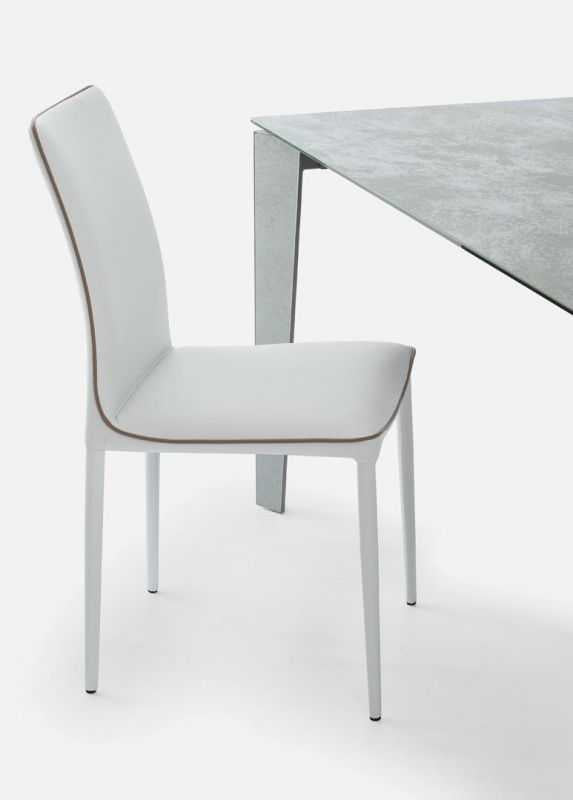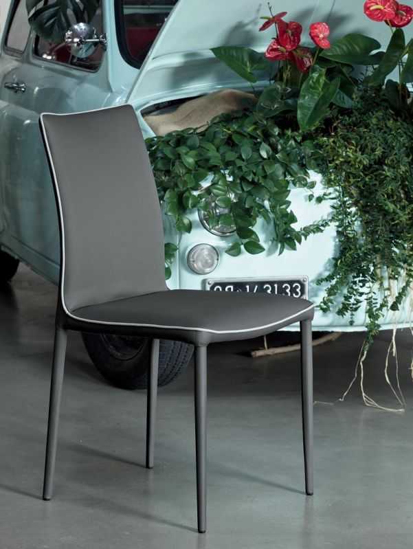 Sedia con struttura in acciaio, completamente imbottita in poliuretano espanso indeformabile e rivestita.