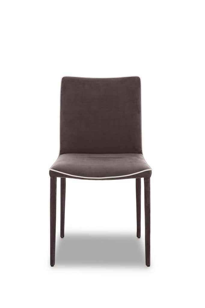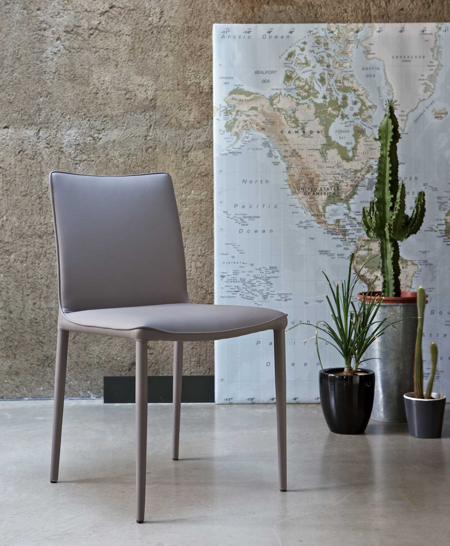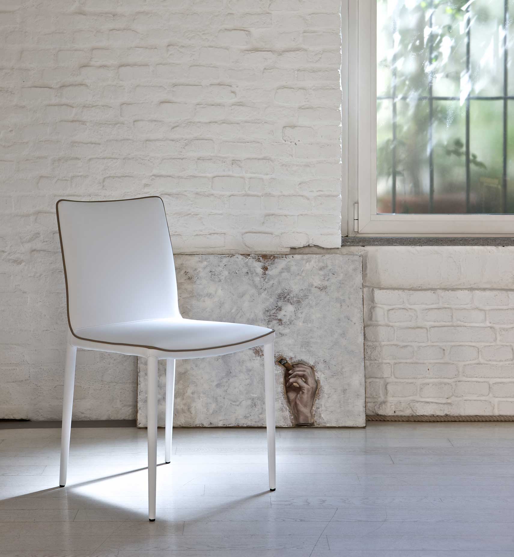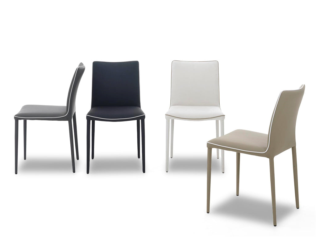 Sedia con struttura in acciaio, completamente imbottita in poliuretano espanso indeformabile e rivestita.