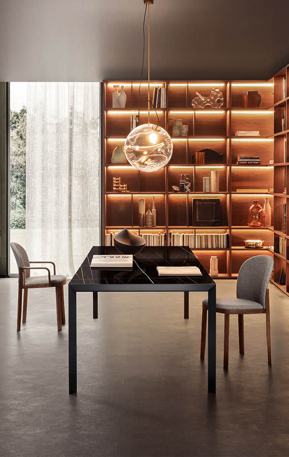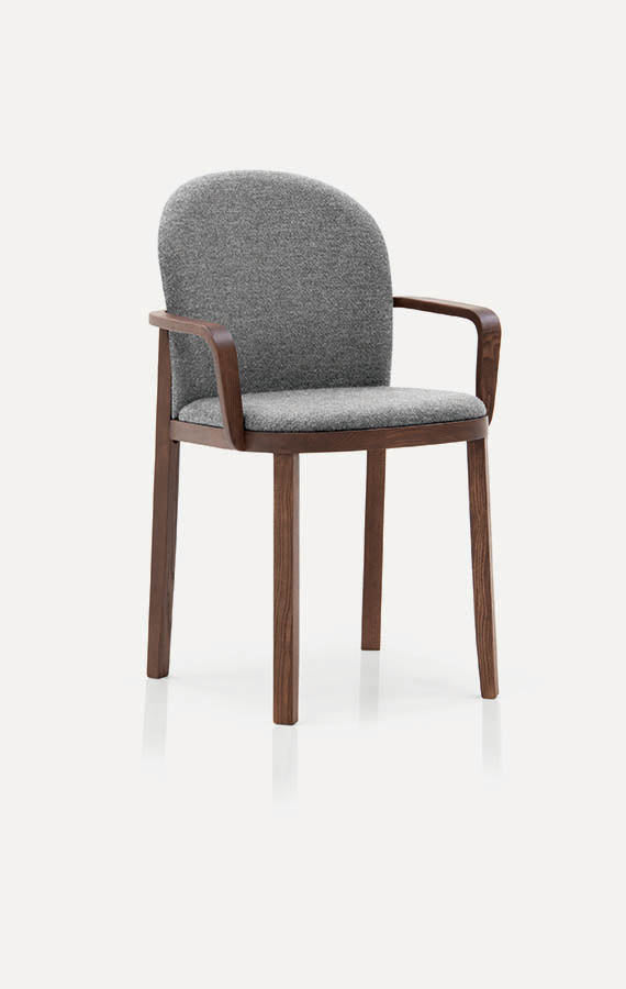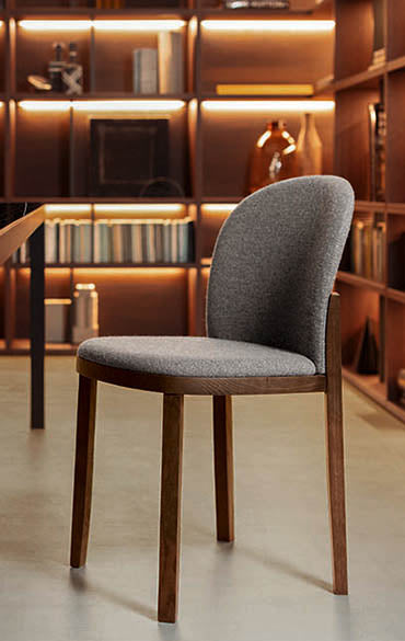 Frutto del confronto tra un’estetica classica ed un approccio contemporaneo all’uso del legno, Orchestra è una sedia che trasmette l’idea di familiarità e di affidabilità attraverso un linguaggio sofisticato e minuziosamente controllato. Philippe Tabet riesce a realizzare un design tanto raffinato ed interessante da rendere Orchestra apprezzabile ed eloquente da ogni angolazione. Le gambe posteriori, a sezione quadrata, leggermente divaricate verso l’esterno, salgono fino a divenire braccioli, trasformandosi in profilo dalle linee curve e dalla piacevole tattilità. Grazie a questa continuità, tutto l’insieme acquista pulizia formale e coerenza. Il comfort è garantito dall’ergonomia della seduta imbottita, che avvolge e sostiene il corpo. Orchestra è perfetta per ogni ambiente della casa, dalla cucina allo studio, alla camera da letto ed è disponibile anche nella versione senza braccioli.