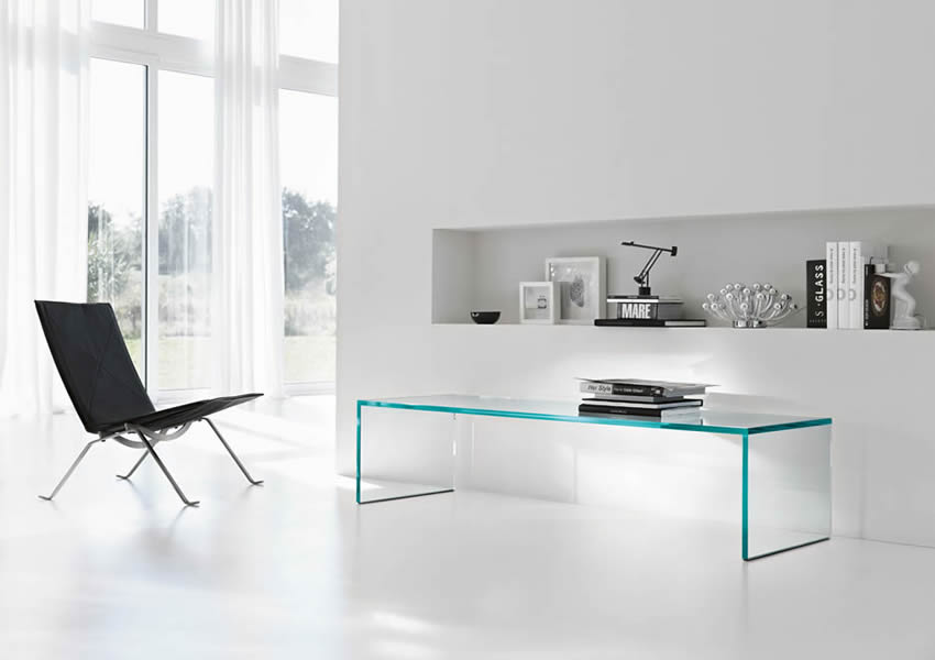 Struttura a ponte in vetro trasparente o extrachiaro (spessore 2 cm).