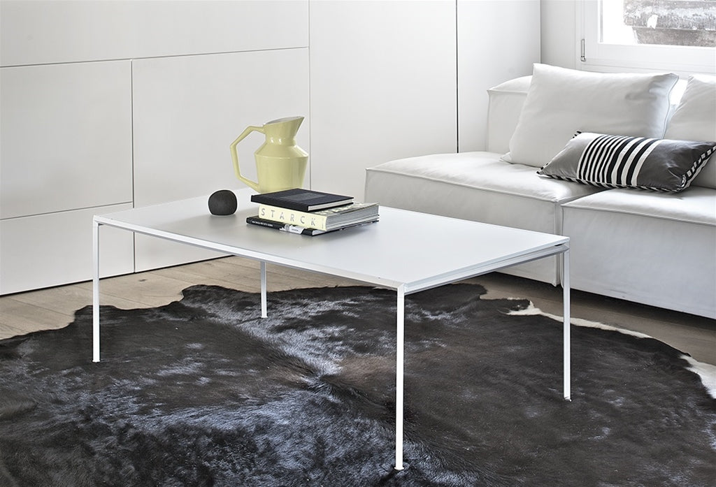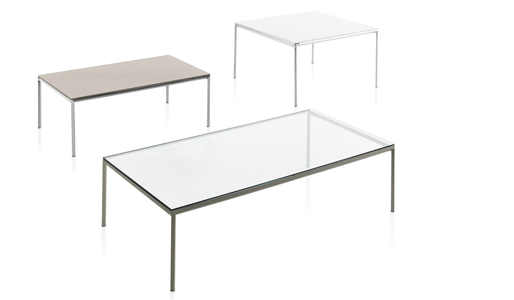 Tavolino disponibile in diverse misure, con struttura laccata e piano in cristallo, oppure in cristallo velvet antigraffio.