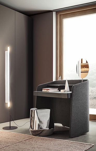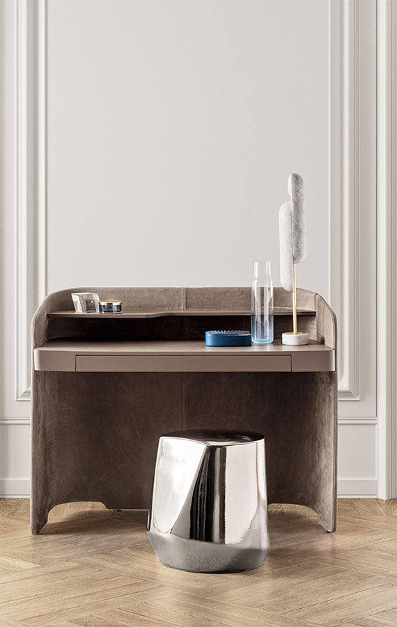 Haik si presenta come un’armoniosa integrazione di forme geometriche, capace di riflettere e giocare con la luce delle sue bellissime finiture metalliche, ma anche di inserirsi con determinazione in ambienti essenziali nella versione di colore bianco. L’artigianalità del processo di realizzazione rende ogni pezzo unico. Alla vista o al tatto si percepiscono infatti la qualità della sua realizzazione e la naturalezza della materia. La forza innovativa di questo oggetto per costruzione, forma, materiale e finiture, lo rende un complemento d’arredo fortemente caratterizzante, adatto ad ogni ambiente dentro e fuori casa. Eclettico nella sua interpretazione può essere usato come comodino, tavolino, sgabello. In ogni circostanza, si tratta di un oggetto unico, riconoscibile, un tocco d’arte che non può essere ignorato.
