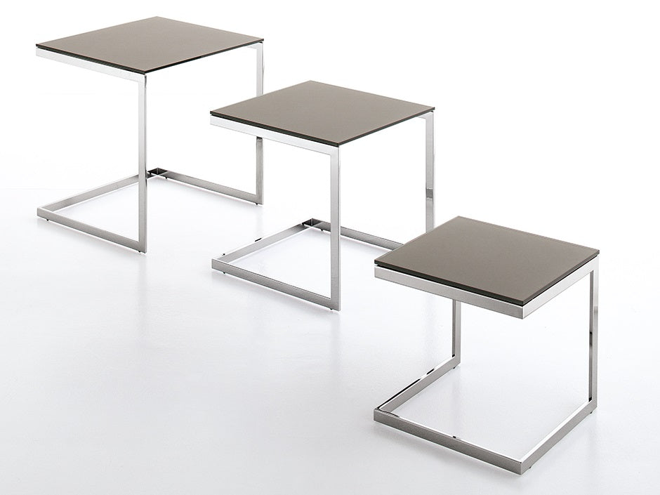Tavolino disponibile in diverse altezze con struttura in acciaio laccato o cromato.