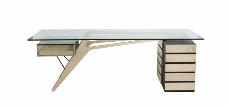 Struttura in legno (multistrato) verniciato naturale e laminato nero, piano in vetro.