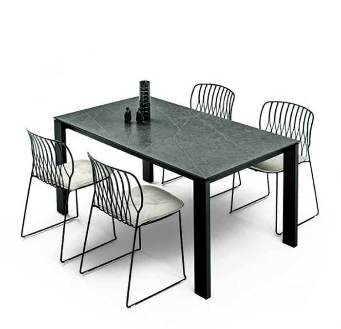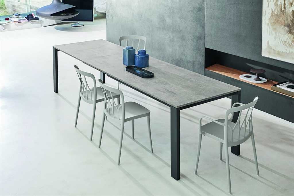 Il tavolo quindi si allunga in modo semplice e pratico, le gambe rimangono sempre all'esterno per un'estrema comodità d'utilizzo.